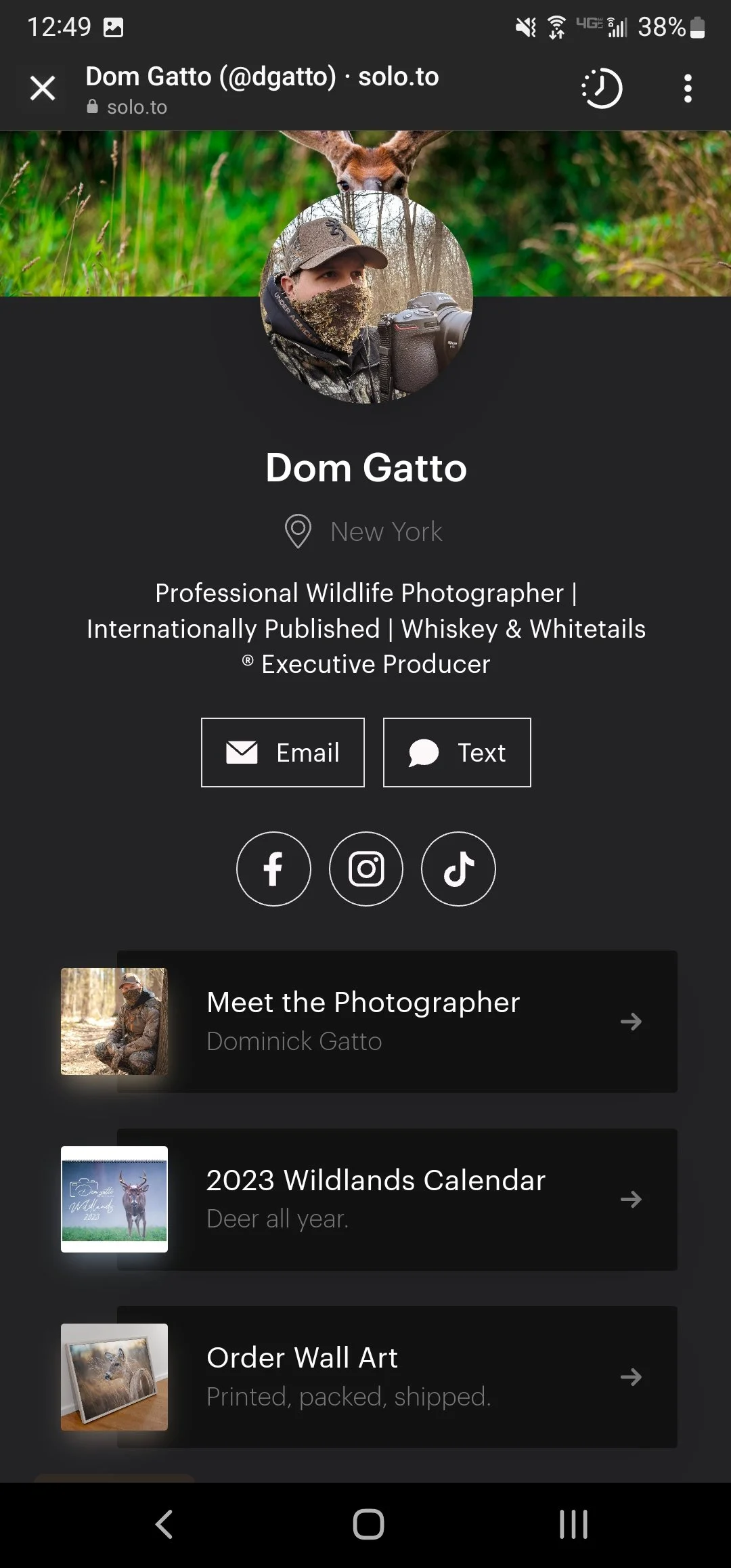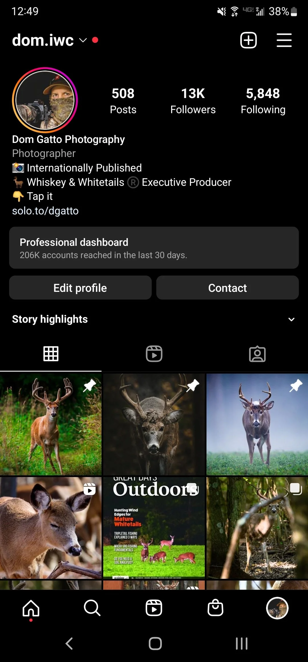 Even though my profile already started with “Dom Gatto Wildlife Photography”, my second line in the bio section is going to expand on the subject. I wrote in “Internationally Published” - which let’s people know 3 thngs: 1 - This is more than a hobby, it’s a business. 2 - I am open to contract work from companies. 3 - It’s an accolade that shows people I have been recognized for my work. This section describes exactly WHAT I DO. I take wildlife photographs, and I sell them.